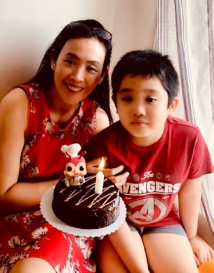 Kristine with son Joaquim, 8, during the pandemic lockdown