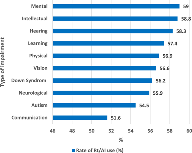 Rate of RT/AI current use in different types of impairments among Dentist working with persons with disabilities.