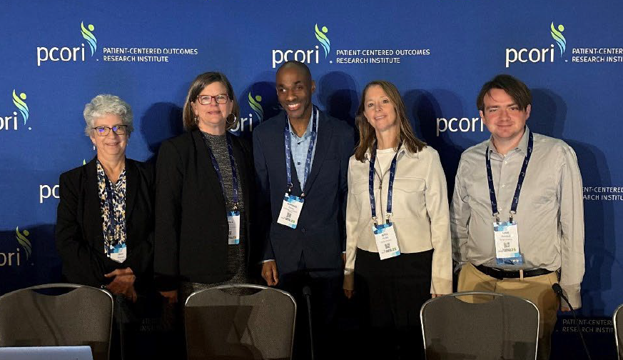 PCORI IDD awardees Judy Reaven, Karla Ausderau, Marquis Garner, Beth Pfeiffer, and Luke Tomczuk at the 2025 PCORI Annual Meeting. Photo courtesy of Megan Leimkuhler.